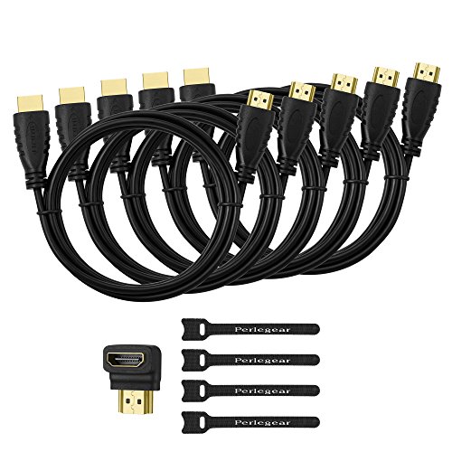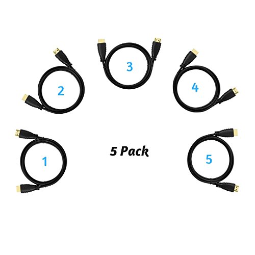 HDMI Cable 6 Feet - 5 Pack High Speed 4K - High Resolution Image and Sound Quality - Connects Multiple Devices 3D, HDTV, Xbox PS4 - Comes with 1 x Right Angle Adapter and Cable Ties