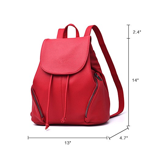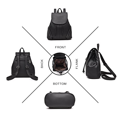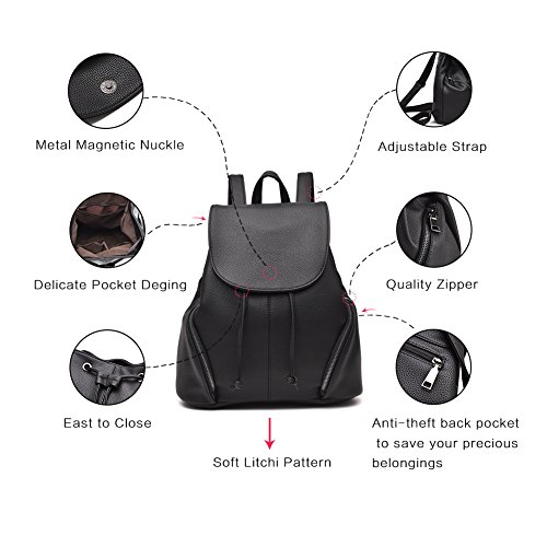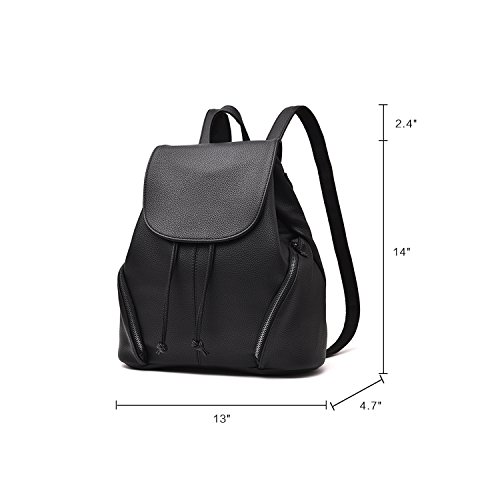 Color: Black Material: Soft PU leather Inside Material: Polyester Backpack Dimension: 13" X 4.7" x 16.4"(L x W x H) Weight: 24.7ounce Interior: 1 x main pocket, 1 x back zipper pocket, 3 x mini pocket, 2 x side pockets Package Included: 1 x backpack Notes?