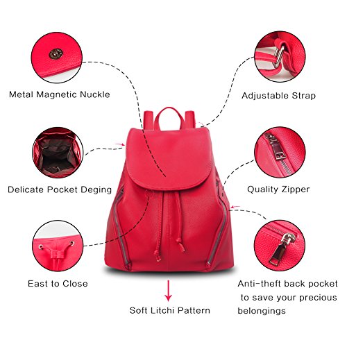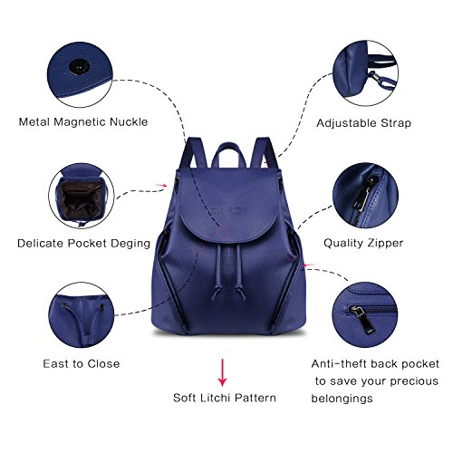 Scientific and reasonable compartments has plenty of organized storage, enough room for your cell phone, wallet, glasses, umbrella and makeup with ample space left over. Top flap magnetic snap has strong adsorption force so it provides extra security. It has two adjustable shoulder straps and a handle on the top which convenient and easy to carry. The fashion Casual microfiber leather backpack is perfect for day-to-day use or occasional travel,shopping,school and a great gift choice.