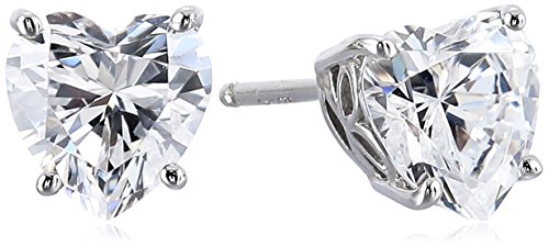 Polished sterling silver earrings featuring heart-shaped Swarovski zirconia stud and friction-back findings