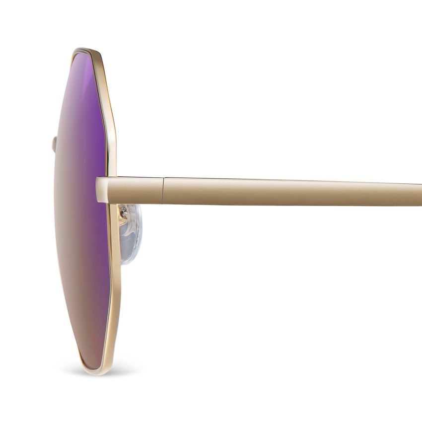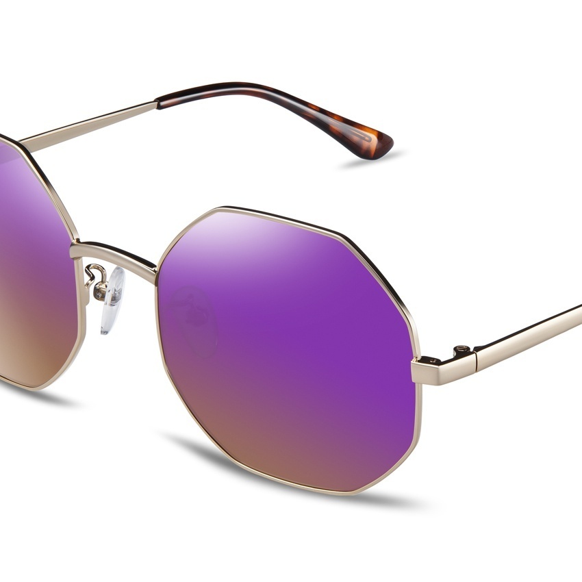 Inspired by angular art, made with metal rims, these QINA sunglasses are a "must have" for fashion forward shoppers. Suitable for Men and Women, the unique octogonal shaped lenses feature a LIGHT GOLD color frame with PURPLE color and POLARIZED lenses for a maximum comfort, and UV 400 protection to shield your eyes from the harmful effects of sun damage. Delivered with a FREE colorful premium and unique designer bag & a cleaning cloth.