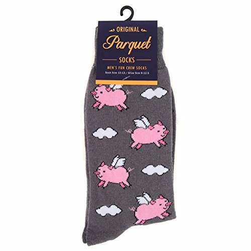 -. Binding : Apparel -. Brand : Parqeut -. Department : mens -. Feature : It's time to own up to your word. Pigs are certainly flying now. Take to the sky and elevate your seamless sock game / 70% cotton, 25% polyester 5% spandex / Sock size: 10-13 / Shoe size: 6-12.5 / Machine wash warm & Tumble dry medium -. IsAdultProduct : 0 -. ProductGroup : Apparel -. ProductTypeName : SOCKSHOSIERY -. Size : One Size -. Title : Men's Hipster Designer Pink Pigs Fly Take To The Sky Crew Dress Socks