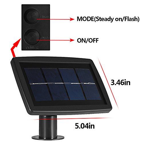2 working modes--steady on and flash, optical sensing technology, auto on at night time; auto off at day time, power saving enough