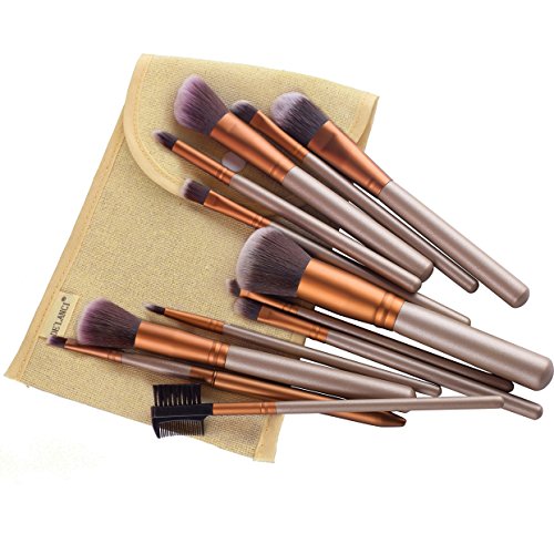 DE'LANCI 12Pcs Makeup Brushes made by premium Synthetic hair, soft and silky to touch. Come with 1 Pc Portable makeup brush bag. More convenient for travel and hone use.