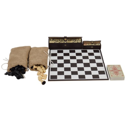 - Contains chess, dominoes, cribbage, dice and a deck of cards