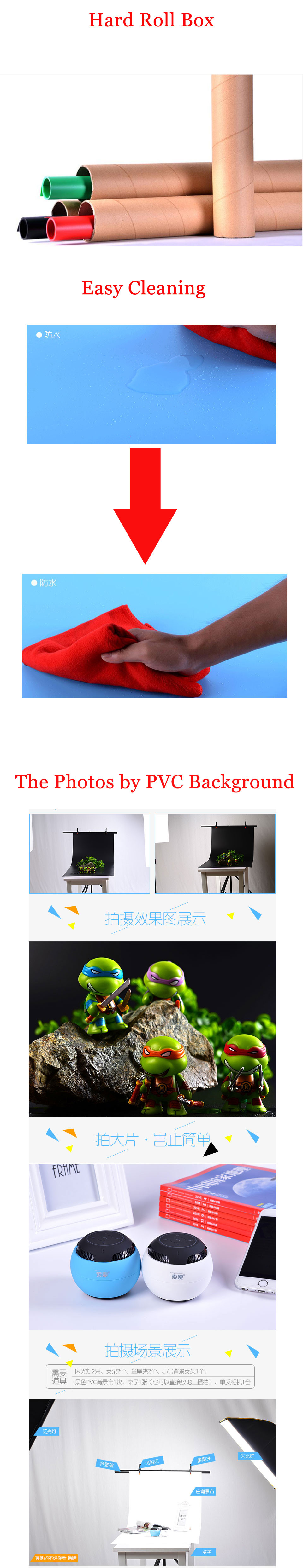 A unique and cost-effective backdrop Create an instant photo studio effect for photography or video. It is durable and the 100% highest quality PVC material used in the manufacturing process of which will certainly not disappoint you. Instant photo studio at home or on-the-go, perfect for travel, easy carry.
