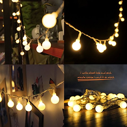 - 5:The globe decorate string lights have two light modes for you to choose: steady on and flashing. the diameter of each globe ball is 1.8cm. NOT big, NOT like a bulb,it can be used for parties, stage, wedding, bedroom, night scenes and other decorations, creating a warm and romantic atmosphere.