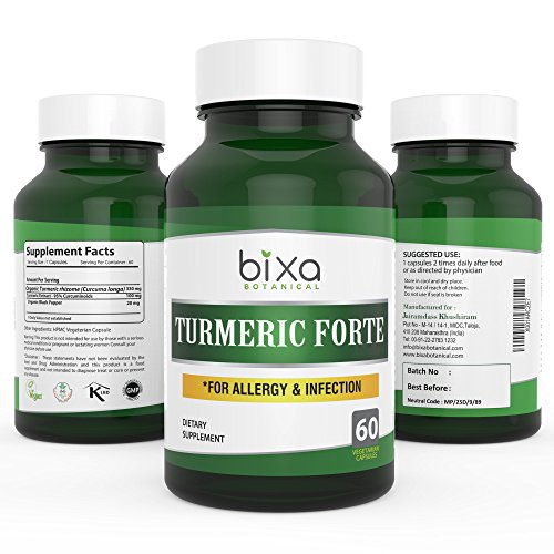 -. Title : TURMERIC FORTE Capsules with 95% Curcuminoids - helps to control Chronic Allergic reactions and Cough, Common Cold, Herbal Blood purifier, Immunity Booster – Bixa Botanical (450mg 60 Veg Capsules)