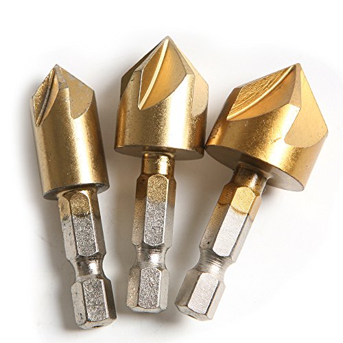 Atoplee 3pcs 13mm 16mm 19mm 90° Countersink Bits 5 edge Chamfer for Wood Board, Plastic Plate, Electric Hand Drill ,Bench Drill