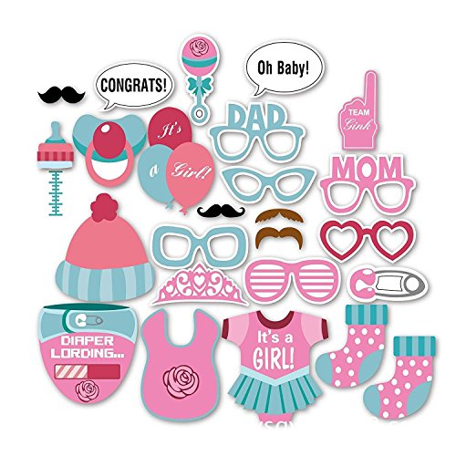 Simplewoo Girl Baby Shower Photo Props It’s a Girl Gender Reveal Party Favors Newborn Party Masks on Sticks, Set of 25pcs (Pink)