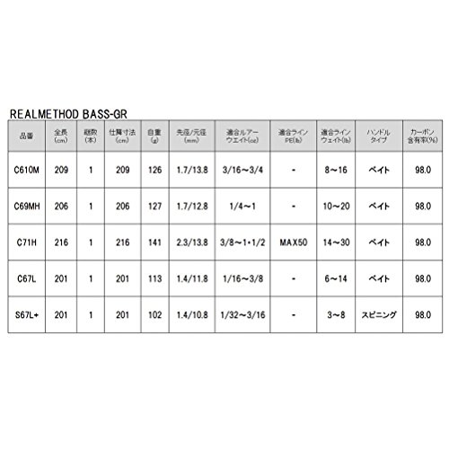 원본상품명: TAKAMIYA(タカミヤ) ロッド REALMETHOD BASS-GR C71H CP-1173