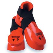 -. Feature : Toe ties and a reinforced bottom strap. / Criss-cross elastic strap with hook/loop closure. / Made in USA. / Available in White, Red, Black or Blue Metallic / Sizes Child M, L, Adult S, M, L, or XL.