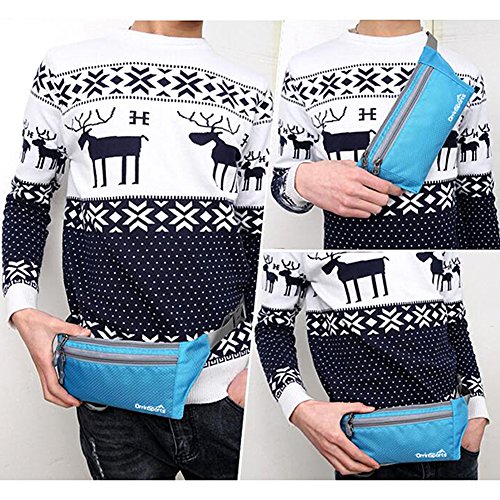 -. Feature : Material: Water Resistant Polyester / Waist Bag Size: 12.6*4.3*0.4(IN) / Adjustable Waist Belt With Strong Plastic Buckle / Slim Lightweight Design, 3 Zippered Pockets To Hold Your Phone, Card, Keys Or Other Small Stuff / Perfect Choices For Gym, Running, Walking, Hiking, Ridding Or a travel Trip