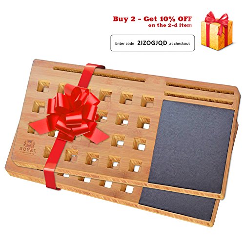 -. Binding : Office Product -. Brand : Royal Craft Wood -. Color : Bamboo -. EAN : 0738523613796 -. Feature : MONEY BACK GUARANTEE in case our lap desk does not live up to your expectations. / YOUR DEVICES SLATE: Designed for any Laptop 11"- 13" inches, 1 slot for iPad, engraved slots for Cellphone and cup or glass. / HEAT PROTECTION: Airflow channel reduces unwanted heat generated by the Laptop/Notebook / COMFORTABLE TO USE: Promotes right posture, feels like using a regular table. Ultra lightweight - 1.0 lb. / THOUGHTFUL DESIGN: Natural Bamboo high quality material, unique design and functionality. -. Label : Royal Craft Wood -. Manufacturer : Royal Craft Wood -. MPN : rcw-06 -. PackageQuantity : 1 -. PartNumber : rcw-06 -. ProductGroup : Office Product -. ProductTypeName : OFFICE_PRODUCTS -. Publisher : Royal Craft Wood -. Size : 13" x 9.5" -. Studio : Royal Craft Wood -. Title : Laptop Lap Desk for Adults and Kids - Bamboo Slate/Board - Mobile Lap Tray/Table with Air Ventilation and Ipad Tablet Stand (11-13") -. UPC : 738523613796