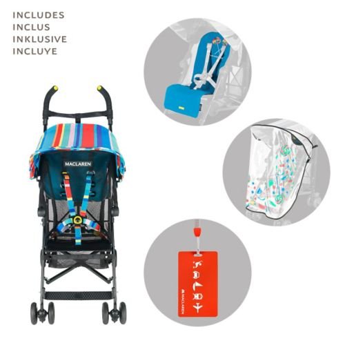 ReleaseDate : 2015-06-19 Studio : Maclaren N.A. inc Publisher : Maclaren N.A. inc Binding : Baby Product Product Description Dylan's Candy Bar Volo stroller, a Maclaren Object of Design, brings festive fun to every walk. The rain cover and waterproof, rainbow hood protects against the elements whilst the 5-point harness offers safety and mesh seat and customized liner add comfort. Designed for children from 6 months to and up, this compact stroller is easy to fold and maneuver at 4.3kg/9.5lb size. Includes rain cover and liner. 0