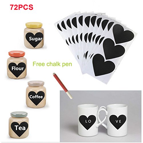 Smart 2016 Christmas 72pcs Heart Pattern Chalkboard Label Chalk Pen Stickers Wall Kitchen Cup Bottle Decor Sticky Decal Gift+1 White Liquid Chalk Marker