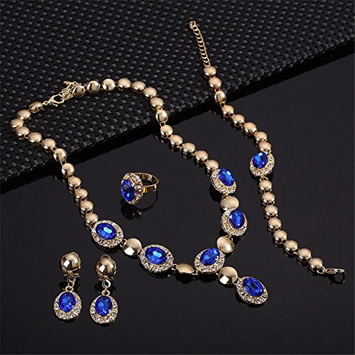 - Title : Moochi Gold Plated Blue Zircon Stones Embedded Brass Necklace Earrings Jewelry Set