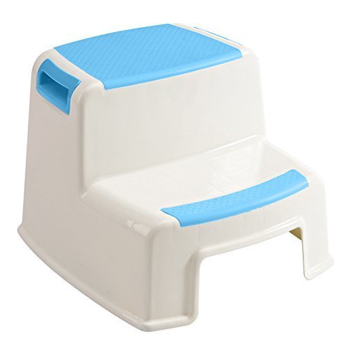 Slip Resistant Stepping Stool Lightweight 2 Step Stool with Handle for Toddlers & Children (Blue)