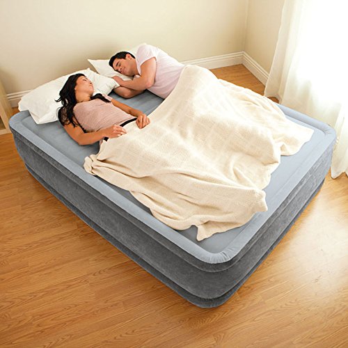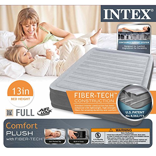The Comfort Plush Full Airbed is a part of the Dura-Beam series of airbeds that are providing amazing durability for years of lasting comfort. The secret is in the Fiber-Tech beam construction, which is comprised of thousands of high-strength polyester fibers that provide enhanced comfort, stability and support. Each bed is covered in plush flocking that is soft to the touch, and the horizontal air chambers provide added stability and support around the entire bed. The mattress is also equipped with a quality-tested, 20.8-gauge waterproof flocked top with 15-gauge vinyl beams and 16-gauge sides and bottom for durability. And best of all, the Comfort Plush mattress is remarkably easy to inflate thanks to the built-in, high-powered electric pump, which does its job in a mere 3 minutes. No more fussing with tiring hand or foot pumps or rummaging through the garage for your detached electric pump. And should the mattress feel a little too soft or firm, you can customize the comfort level with the touch of a button. The Comfort Plush is raised 13 inches from the floor, making it taller than most inflatable mattresses. And at 54 by 13 by 75 inches (W x H x L), the mattress is an official full size, making it a good fit for fitted sheets. The Comfort Plush Full bed--which offers a capacity of 600 pounds--is a terrific choice whether you're sleeping at the in-law's overcrowded house or setting up a guest bed in the basement. The mattress comes with an AC power cord and a duffel bag (for storage). Regarding Inflation: Measurements will vary based on the manner in which it is inflated and packaging disclaims “approximate size”. Airbeds are measured from the widest point including the beams (bulges) on the side and off the tallest point from the floor including built-in pillows if applicable. Location, temperature, and humidity will affect the airbed’s firmness. Airbeds will need to be occasionally re-inflated (topped off) to maintain desired firmness when used for more than a few days as vinyl tends to relax over time.If electrical power is not available then a separately operated pump can be connected to the control valve for inflation: simply turn the control dial to the inflation symbol, insert the air pump nozzle into the valve at the center of the control dial, and inflate the airbed.Feature