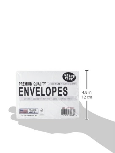 -. Binding : Kitchen -. Brand : LEADER PAPER PRODUCTS -. Color : White -. EAN : 0797075230639 -. Feature : Each package includes one hundred envelopes / Envelopes are available in color white / Made in USA -. IsAutographed : 0 -. Label : Notions - In Network -. Manufacturer : Notions - In Network -. Model : A2100 -. MPN : 355150 -. NumberOfItems : 100 -. PackageQuantity : 1 -. PartNumber : 355150 -. ProductGroup : Art and Craft Supply -. ProductTypeName : HOME -. Publisher : Notions - In Network -. Size : 4-3/8" x 5-3/4" -. Studio : Notions - In Network -. Title : Leader Paper Products Envelopes A2 4.375-Inch-by-5-3/4-Inch 100-Pack, White -. UPC : 797075230639