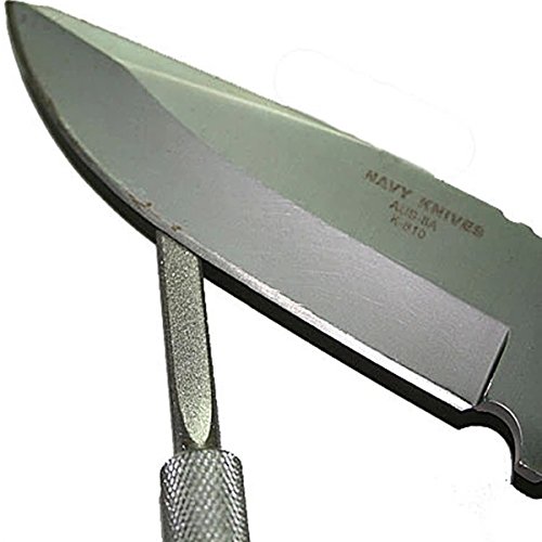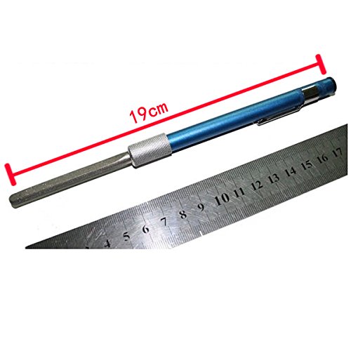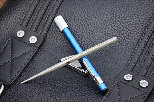 - Feature : 3-in-1 knife sharpener is a handy pen shape device that can be used for sharpening almost any types of knives. / Pocket clip for easy storage, light weight, Reversible rod stores in handle. / Built-in chuck positions & firmly holds sharpening stone. / The sleek aluminium handle combined with the ultra metal coated diamond rod gives the the sharpener an unique personality. / Sharpening Groove for hooks, Aluminum housing protects the sharpening rod