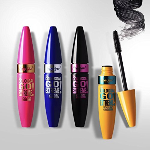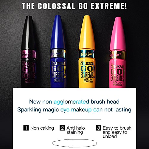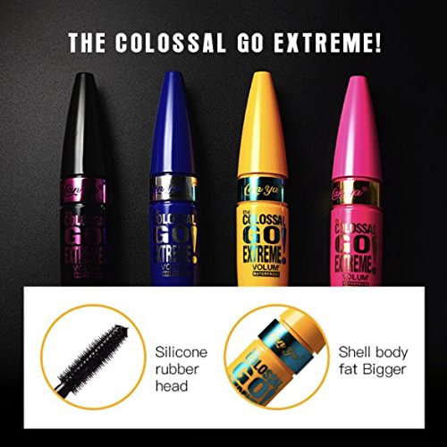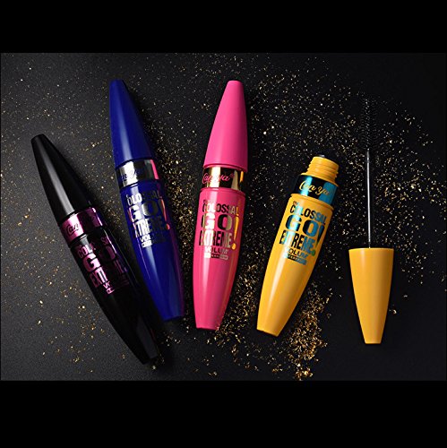-. Feature : ALL BLACK MASCARA! Pack of 4 (1 pink, 1 yellow, 1 blue, 1black package ) ! 4 colossal go extreme curling mascara. / Thickens the lashes evenly and smoothly, without flakes, smudges or clumps. / Separates and builds 5x fuller lashes. Intense Carbon Black Pigments. / BEST DEAL- PACK OF 4!!! Pink Yellow Blue Black PACKAGE each. All BLACK COLOR / Fast shipping- It takes 5-10 business day to arrive and we provide best customer service