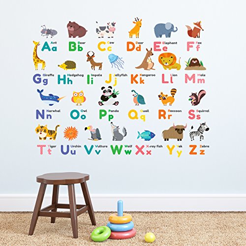 Our Animal-themed alphabet wall stickers include both lower and upper cases for each letters. The bright colours and friendly animal characters generate a perfect educational aspect yet, decorative piece for any child's bedroom wall. Included are an assortment of well-known animals added with an assortment of colours that is convenient for both boys and girls. This product is ideal for nurseries, classrooms, for boys and girls of all ages to appreciate and learn.