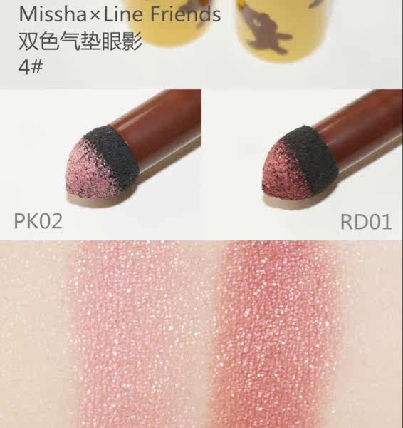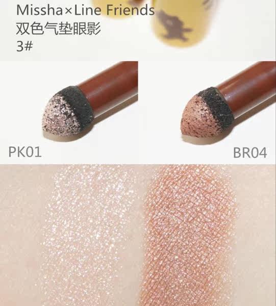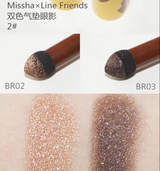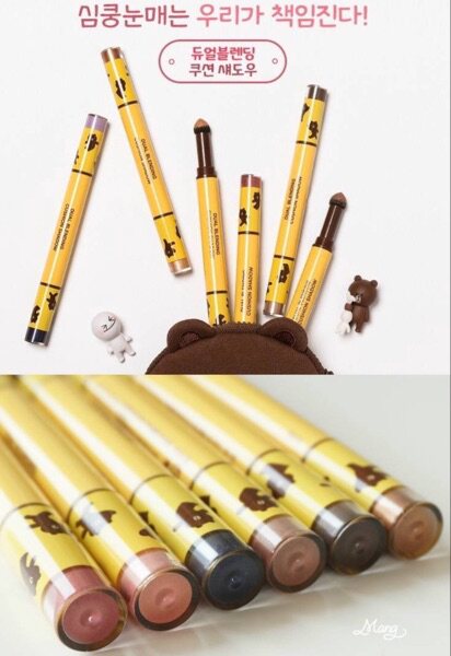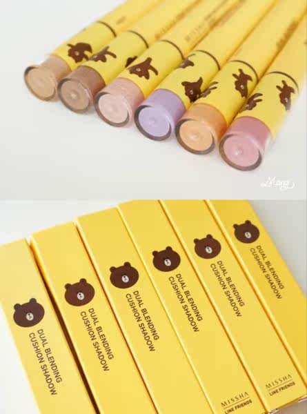谜尚X line friends 第二弹重磅上市 双头眼影棒,一共6个色,都很实用, 满足各种场合哦~ 我觉得飞粉是难以避免的,因为显色度高, 双色配色一深一浅,晕染效果也很好,一只眼影笔就能搞定整个眼妆,整体而言非常推荐!