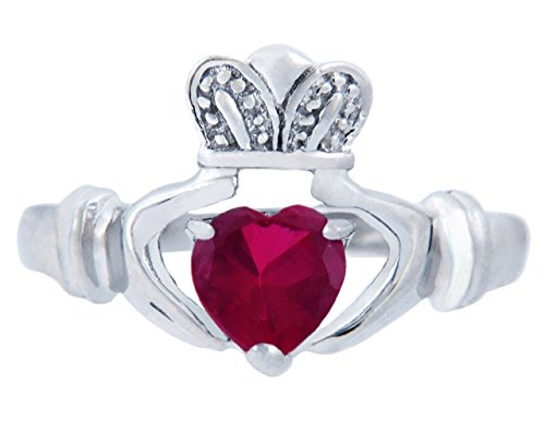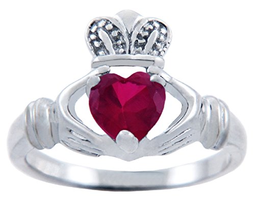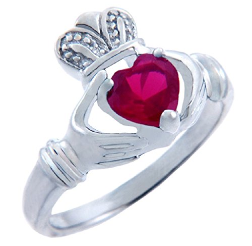 -. Binding : Jewelry -. Brand : Claddagh Birthstone Rings -. Department : womens -. Feature : fine Irish Claddagh ring individually hand-set with a red cubic zirconia heart-shaped center stone / carefully handcrafted with authentic 925 sterling silver in expert polished finish / comes with free special fine jewelry gift packaging / made in the USA yet offered at factory direct jewelry P.R.Ice / ships from the manufacturer directly to the customers -. Label : Claddagh Gold -. Manufacturer : Claddagh Gold -. Model : CDHSIL0298-Ruby -. MPN : CDHSIL0298-Ruby -. PartNumber : CDHSIL0298-Ruby -. ProductGroup : Jewelry -. ProductTypeName : FASHIONRING -. Publisher : Claddagh Gold -. Studio : Claddagh Gold -. Title : Personalized Sterling Silver Solitaire July Birthstone Heart CZ Irish Claddagh Ring