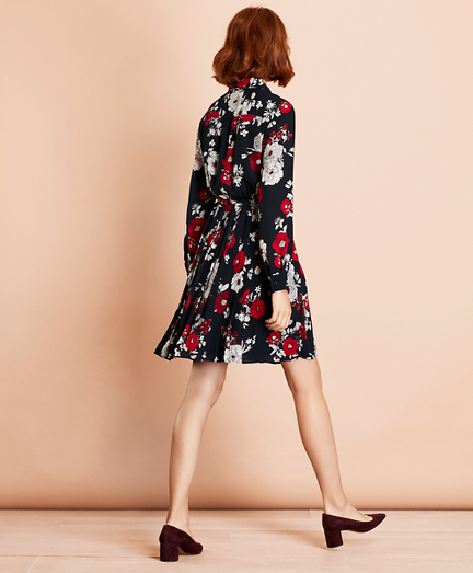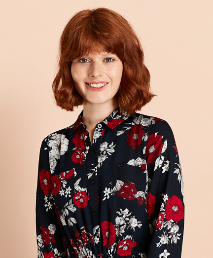 아름답게 그려진 꽃과 흐르는 듯한 크레이프를 셔츠 드레스에 더했습니다.