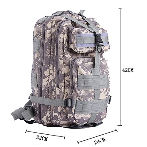 -. Binding : Misc. -. Brand : Z ZTDM -. Feature : Waterproof / Material: Oxford / Capacity: 30L; Dimensions: 42*24*22cm/16.5*9.4*8.5"(Height*Width*Depth) / Waist Belt, Sternum Strap, padded and adjustable shoulder straps help relieve pressure on shoulders while carrying heavy loads. / Two Spacious compartments with small pouches inside and two front pockets, the Rucksacks Tactical Backpack is ready to meet your needs. -. IsAutographed : 0 -. IsMemorabilia : 0 -. Label : Z ZTDM -. Manufacturer : Z ZTDM -. ProductGroup : Sports -. ProductTypeName : SPORTING_GOODS -. Publisher : Z ZTDM -. Studio : Z ZTDM -. Title : Z ZTDM Outdoor Tactical Molle Backpack Army Military Small Rucksacks 25L 3 Day Assault Pack for Camping Hiking Trekking fishing Waterproof