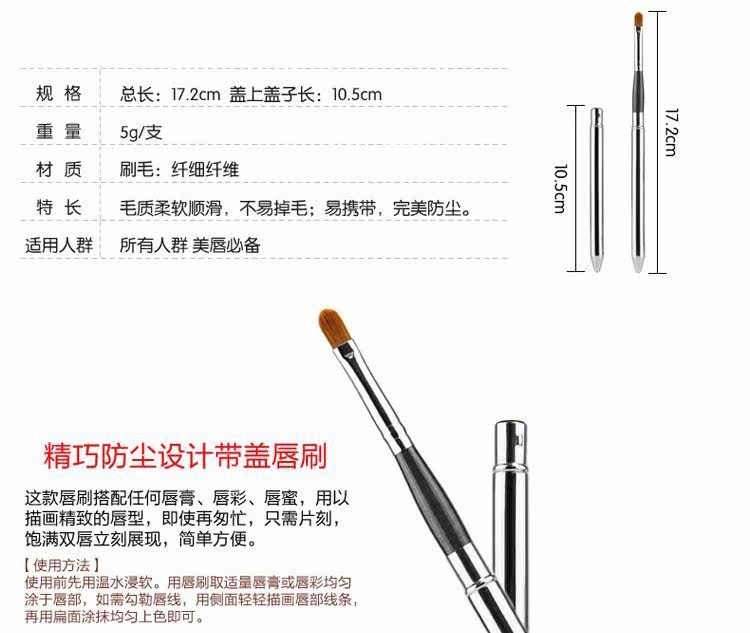 因为口红颜色众多,买家很难确定自己适合哪个颜色,所有为了方便MM轻松找到适合自己的颜色,本店推出了口红分装试色;这时候就又有买家反映,分装试色没有唇刷,试色很不方便,本想国外代购一款唇刷,但是搭配试色,如果唇刷太贵就不怎么亲民,考虑到价格跟实用这方面,对于买家来说amy觉得定制是最划算的,定制的产品,质量会比市面上普通的唇刷要好,价格也不会太贵;所有amy特意从厂家拿样,多款唇刷做了对比,最终选择了这款高级纤维制作的便携式唇刷,不仅物美价廉,而且方便携带哦!