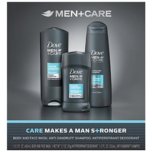 - Feature : 3-piece dove men plus care everyday gift pack combines 13.5 oz dove men plus care body and face wash, 2.7 oz dove men plus care clean comfort antiperspirant deodorant, and 12 oz dove men plus care anti dandruff fortifying shampoo / No.1 dermatologist recommended brand / Dove men plus care clean comfort body and face wash hydrates for healthier, stronger skin / Dove men plus care clean comfort antiperspirant deodorant is tough on sweat, not on skin / Dove men plus care anti dandruff fortifying shampoo helps eliminate flakes