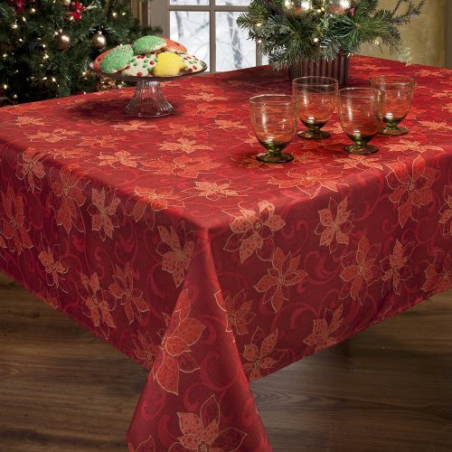 - 60 by 104-Inch tablecloth; Fits a table of 10 to12