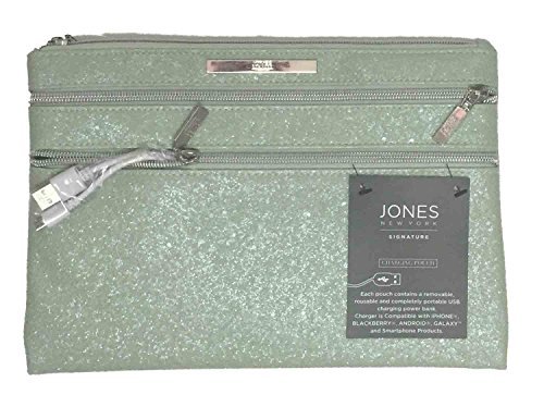 Jones New York Signature Charging Pouch Clutch Purse has 3 zippered and fully lined compartments. Now you can charge your phone inside your stylish pouch while you are on the go and rest assured never be without power for your phone again! Contains a removable, reusable and completely portable USB charging power bank.iPhone, Blackberry, Android, Galaxy and Smartphone products compatible.Feature