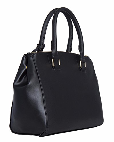 • Rich Saffiano Faux Leather. Triple Entry Design. Gold Tone Hardware.