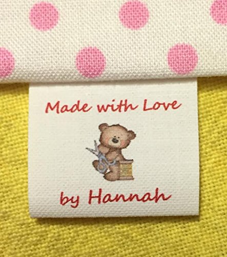 -. Title : 40 Custom Precut Cotton Loop Fold Sewing Label/tags with Cuddly bear Graphic-made in USA