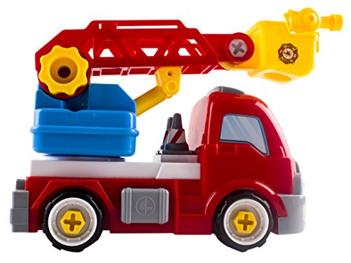-. Feature : EDUCATIONAL TOY THAT EXCITES FOR HOURS OF FUN - Help grow Children's minds and imagination's as they pretend To take a part a Fire Truck Toy and put it back together / KIDS LOVE TO LEARN AS THEY PLAY - Wonderful Build toy to help develop and improve fine motor skills at a young age, Great for little engineers looking to expand their engineering skills to the next level! / TOUGH HIGH QUALITY PIECES - SAFE NON-TOXIC PARTS - Superior products with Highest Toy Quality Standard, Great for early development and pre-kindergarten toy. / INSPIRE AND ENCOURAGE - Curious and creative minds build coordination and memory Skills, Improves gross and fine motor skills / WHATS INSIDE: Fire Toy Truck (9" In length, 4" in Width, 7" in Height without Raised Ladder) Ladder Extension 12 Inches Long can rotate 360 degrees, includes a Wrench, Screwdriver, and 2 Construction Cones.