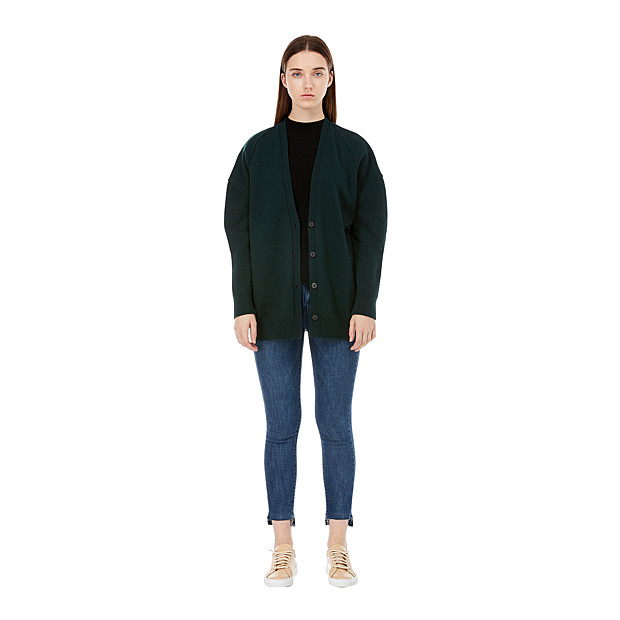 -볼륨감있는 실루엣이 돋보이는 캐주얼한 무드의 가디건