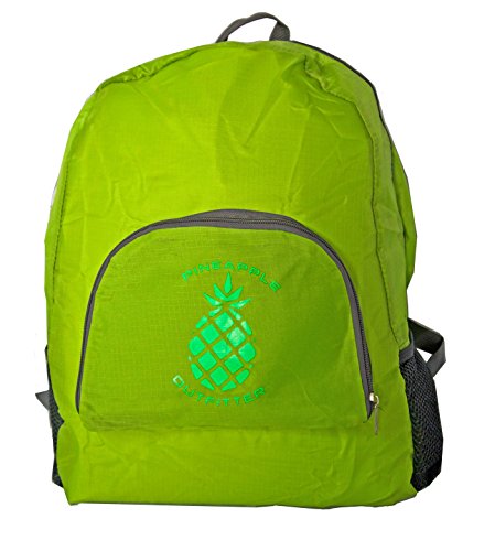 -. Feature : Lightweight travel pack will go anywhere you want to go without the bulk and weight of an ordinary backpack. / Pineapple Outfitter's packable day pack folds up into a pouch, so you can toss it in your suitcase and avoid extra charges at the airport, then unfold it to a full 16x19x8 inches. / Stores, organizes and protects lunches, jackets and other gear or whatever you need for your outing in water-resistant nylon pockets. / Perfect modern rucksack for day trips, vacations, school, work or anywhere you are on the go. / Ultra-light, ultra-durable, ultra-awesome knapsack boasts 2 water bottle holsters plus a front-zip pocket in addition to the main pocket.