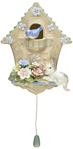 Cosmos 80103 Fine Porcelain Cat and Birdhouse Musical Figurine, 6-3/8-Inch