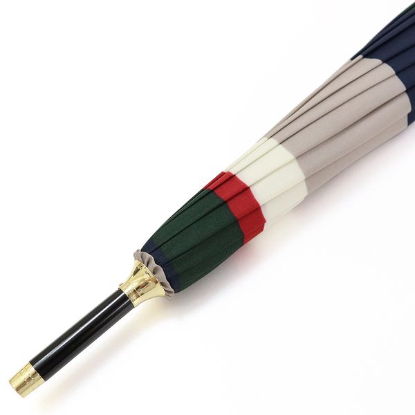 ●骨の数が12本と一般的な傘より骨が多いので丈夫で開いた時に丸く見えるのが特徴。