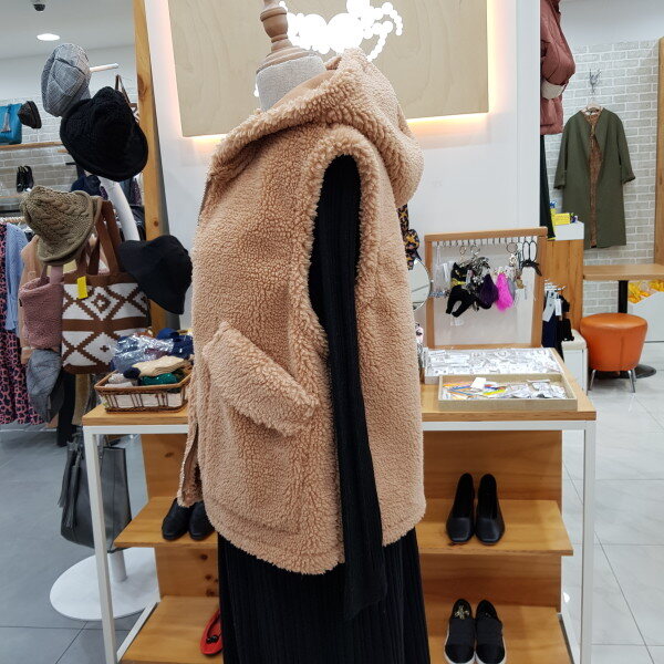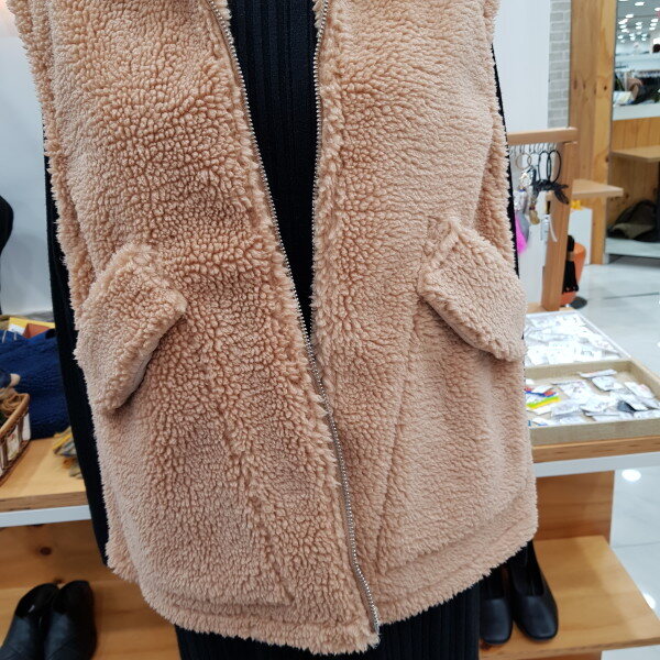 후드보아털 베스트입니다보쏭보쏭 촉감도 부드럽고 안쪽에 무스탕으로 따뜻하고 뽀근하게 입을수 있는 베스트입니다