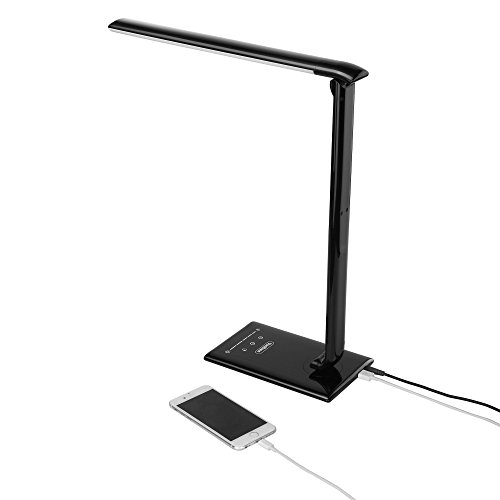 -. Title : VonHaus Black Folding LED Desk Lamp with USB Charger, 7 Level Dimmer, Touch Control & Timer - College Student, Bedroom, Office, Hobby or Modern Table Lamp