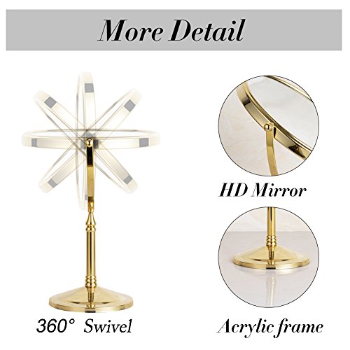 Two-sided 8-inch diameter circular mirror and features a smooth 360-degree swivel design