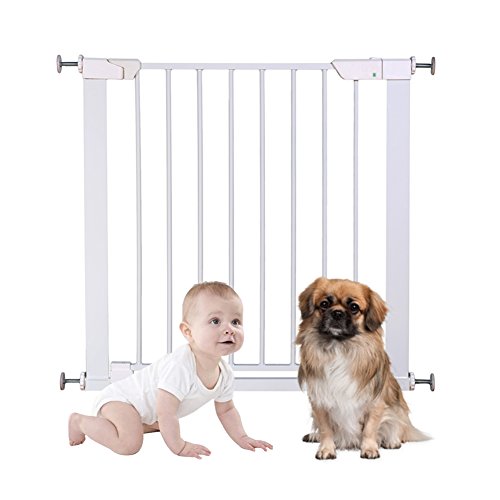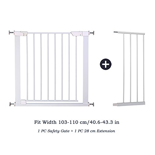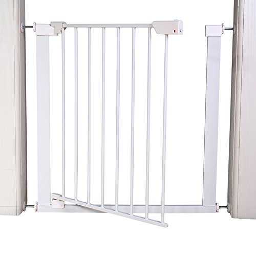 ALLAIBB Auto Close Metal Baby Gate Magnetic Walk Thru Safety Gates, White, 40.6-43.3 in