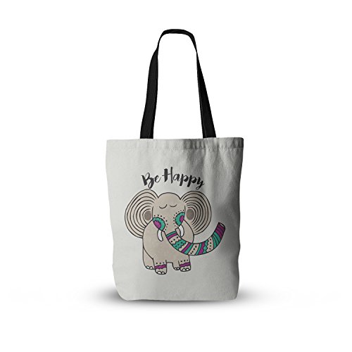 KESS InHouse Pom Graphic Design "Be Happy" Tan Typography Everything Tote Bag, 18" x 18", Multicolor