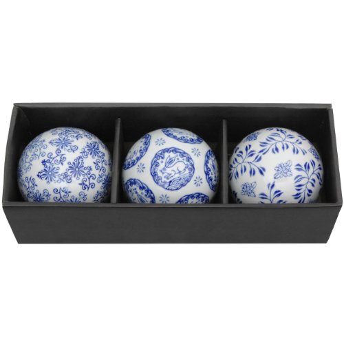 -. Title : Oriental Furniture 3 Piece Decorative Porcelain Ball Set - Blue