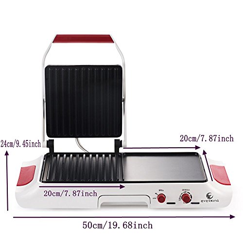 EverKing Electric Grill Griddle Combo,BBQ Grill Griddle,Sandwich,Panini Press and Griddle Plate You can enjoy all of the flavor of your favorite grilled foods. Bring all the fun from cookouts and barbecues indoors, no matter the season.
