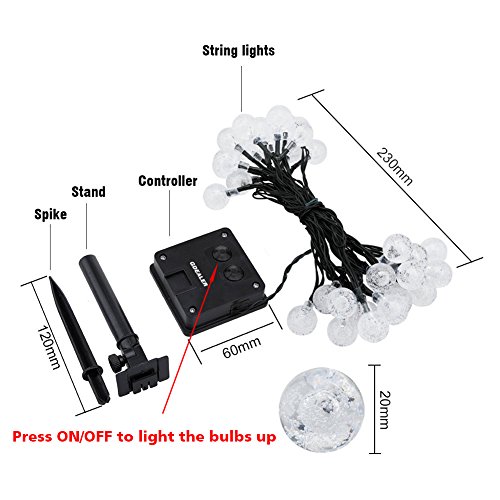 GDEALER Solar String Lights 20ft 30 LED Crystal Ball Waterproof Outdoor String Lights Solar Powered Globe Fairy String Lights for Outside Garden, Yard, Home, Landscape, Party